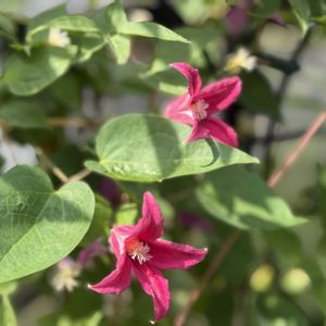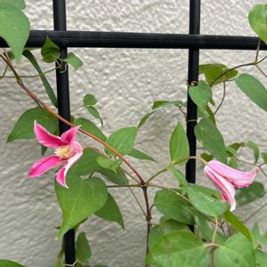 クレマチス🌿プリンセスダイアナ👸の秋花こんなに良く咲いています 赤い軸にピンクの花🩷もステキです。 暑さに強い系統とのことなので、今年の酷暑も乗り越えてくれたようです👏 この花が咲くと特に嬉しいのは、最初の5年くらいうどんこ病でよく咲いてなかったからです。 大事にしすぎて軒下の守られる場所、すなわち風通しの悪い場所でした💧 おもいきって、炎天下で雨も風も当たるところに出したら、その年から年3〜4回咲きはじめました。 植物にとって🌿日と風が大事なんだなぁと納得したできごとでした😊