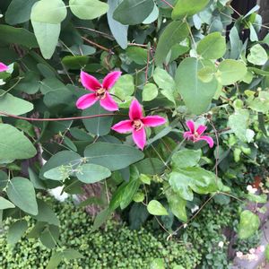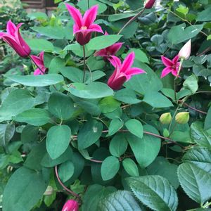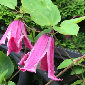 🌿クレマチス 🌿 プリンセスダイアナ👸 鮮やかなピンク色のチューリップ咲きの可愛いお花💕 今朝は3つ咲きました🎶