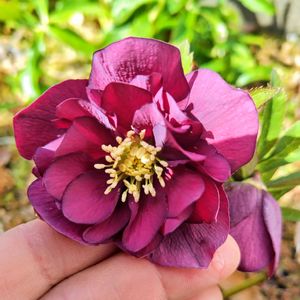 午後から時々青空が😊 でも寒い🥶 全体像を撮ろうとすると、何故かボケて上手くいかず、やっとピントがあったら、大きくなってしまいました…が😅 我が家の💚クリスマスローズ💖 ダブルの小輪多花性の子です