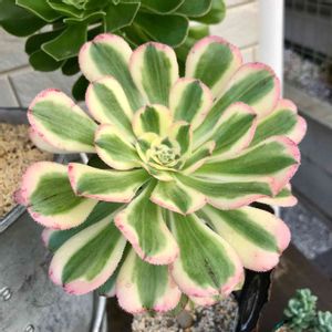 今日は暖かいですネ〰️☀️.° 外に出たらそのまま、土いじり……アエオニウム達の植え替えしていますwww 今日はこの子 艶日傘🍃🌱 若緑に、縁どりほんのりピンク色︎☺︎︎☺︎💕 春色ですネぇ〰️🌷ஐ೨🌸🐝🌸ஐ೨🌷