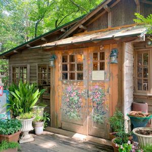 ヒルトップでまったりランチ〜🍴 森の中のコテージのような建物の入り口には 華やかな花束が描かれてました✿.*ஐ(*´꒳`*)✿.*ஐ