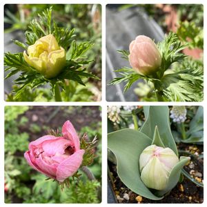 金曜日の蕾たちです💕 アネモネの蕾たち🤗 ほんと蕾の時から美しいわ😆 右下はチューリップ🌷 奥に見えてるムスカリと上2つのアネモネと寄せ植えにしてます💕