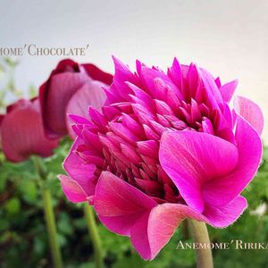 既に投稿してるボルドーのアネモネ 同じアネモネの3ショットです♡︎ʾʾ 今日のショットだと光の関係で赤っぽい色に写ってます 開いたり閉じたりを繰り返し かれこれ1週間以上キープしてます 2番花も追いつき 寄り添ってペアになってます 名無しでしたが名前が判明しました なんとボルドー色ですが 名前はアネモネ・チョコレートだそうです 書かれてるDay1などの文字は コラージュフレームを使っただけで 写真とは関係ありません(^^;;