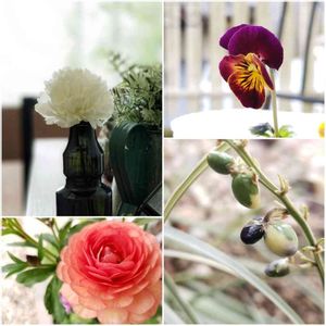 アネモネ凛々花は最初の2,3輪は茎が長くて咲ききった頃にはお花が俯いてしまうので、カットして小瓶にインしてマス。 そして右上は昨年たくさん咲いてくれた植田さんビオラ レインボーウェーブUSAのこぼれ種から育った、2株のうちの弱っちいコが先にお花をつけてくれました。まだまだチンチクリンなお花だけど可愛い💜 そして右下はコヤブランかな? 斑入り葉に白いお花が咲く品種です。今までは実がなる前に切っちゃってましたが、1本だけ残してみたら、実も斑入りなの~?な結果になりました😆だんだん濃い紫のような色になってきてます。 そして今日もエリスが可愛くてまた Σp[【◎】]ω・´)