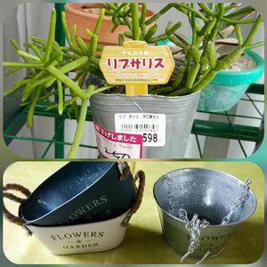 こんにちは👋😃 午前中雨と雷が凄かったんですが今は落ち着きました😌 昨日は高校野球決勝たいへん感動しました😭 最近コメリで見つけたリプサリス🌱 空気を綺麗にしてくれるみたいです~~~ しかも半額以下でゲット👍 これは吊るすと垂れてくれるのかな? もう増やさない❗ 決めてたのに秋が近づく気配でまた欲しくなってしまいます😅 下の📸は近くの西友が近々リニューアルの為全部じゃないけど半額セール🎵 ブリキ鉢3つ半額でゲット👍 園芸コーナーもうほとんど売り切れ💦 もっと早く行くべきやった😣