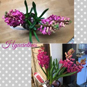 こんにちは 早い昼休みです。 今朝のヒヤシンスです。 お日さまを求めて? それとも仲間割れ?