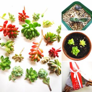 左 【カット苗 色々】 右上【ガステリア】 右中【ハオルチア シンビフォルミス メアリ】 右下【節分福引せんべい】 GSを通して知り合ったお友達と、 松フラさんのセール・3日目に 行って参りました🚙💨 画像はその時にいただいた 嬉しい手土産の数々( ꈍᴗꈍ) 私が購入したリースの鉢に、 わざわざ合わせてくれたカット苗💠 ちっちゃいガステリア🌱 ネオンカラーのハオルチア メアリ💚 そして下の三角形のお菓子はお煎餅で、 割ると中に七福神が入ってます👹 子供の頃から当たり前のように 節分時に食べてましたので、 てっきり全国展開かと思いきや、 実は三重県限定の風物詩です wikipediaより 福引煎餅(ふくびきせんべい)とは、三重県の津市から松阪市にかけての中勢地区で、節分の季節限定で販売されている節分厄除けの煎餅であり、内部が空洞の略四面体立体形状を有し、その内部空洞に小さな玩具や縁起物が封入されている。