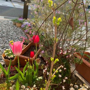 赤いチューリップ🌷ばかりだと思ってたけど黄色もあった