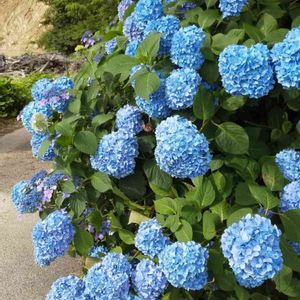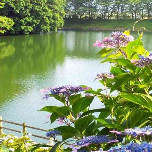 素敵な場所へ向かって行くと素敵な出会いがあります 数種類の紫陽花に出迎えられます 残念な事に昨年の豪雨での土砂崩れ(後方)が痛々しいです