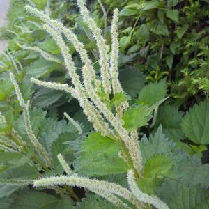 梨山散策 ⑥―④ 🌱ヤブマオ イクラサカ目イクラサカ科 カラムシ属 初めて見ました 最初 押し花で良く使うカラムシソウと思いました カラムシソウはどこでも見ますが 今までこの花に気づかなかったのが不思議に思えました 葉っぱを触って見てカラムシソウより薄く違う事に気づきました 帰宅して調べてヤブマオと言う植物であることがわかりました 繁った雑草の中で白くて長い花柱 一際目立ちました