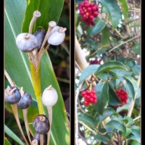 🌱サネカズラ🌱 🌱ジュズダマ🌱 昨年里山散策して出会ったサネカズラに会いに行きました 同じ笹藪の場所に一際目立つ紅い実 とても綺麗です 側にジュズダマ 昨年はサネカズラに夢中でジュズダマには気付かないでいた見たいです 又 来年是非会いに行きたいと思います