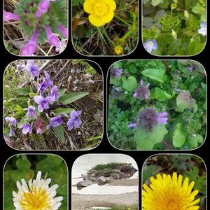 👟今日散歩中に出会った可愛い花々👟 🌱イヌノフグリ(から時計回りに) 🌱姫踊子草(大好き) 🌱タンポポ 🌱菜の花 🌱シロバナタンポポ(初めてです) 🌱スミレ 🌱仏の座(ハ―トの顔👀) 🌱キンポウゲ 自然の中でたくましく生きてる野草 どれ見ても可愛いですね~
