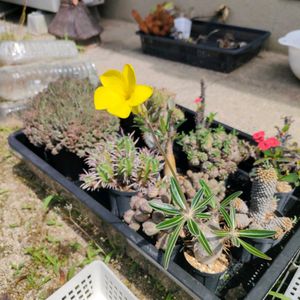 昨日2025/05/25の新入りたち 左から パキポディウム デンシフローラム パキポディウム カクチペス センナ メリディオナリス アデニウム 獅子葉 アデニウム アラビカム