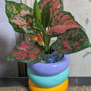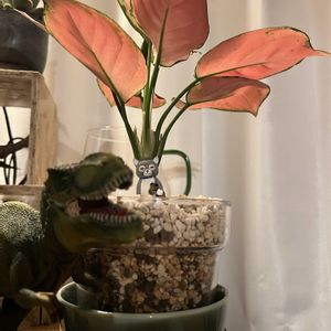 DAISO植物お迎え記録📝 スタンダードプロダクツだったかもしれませんが ピンクの葉っぱのアグラオネマさん フライングタイガーで半額になってた鉢カバーにin! DAISOサンスベリアヘアーのビヨンさんと並べたら良い感じ👍