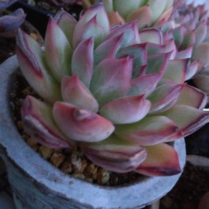 おはようございます😃☀ 1週間ぶりに朝パトです☘️ ピークの時よりエケベリアの紅葉が 薄くなってきているようです。 色が抜けて透明感の出る季節☃️🤍🩵 寒そうな顔とでも言うのでしょうか🥶 この寒さを耐えたらきっと蛍光色 に近づきそうです✨ ①ルイーズは紅葉しない品種だけど ほんのり外葉がピンク、透き通ってる🤍🩷 ②水の吸えていなかったホワイトミニマは 土を変えたら中心からもりもりしてきました😃 ③リエール苗…2年経ってやっと 本当の色に近くなってきたコロキ🧡