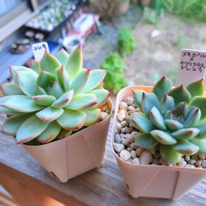 猛暑再び…😅 今日の暑さは体に堪えました。 多肉に水やりをする時に座るイスを探していたのですが、ようやくちょうどいいものを見つけました。 最初はプラスチック製の踏み台にしようと思っていたのですが、中々見つからず。 ホームセンターの園芸コーナーにある発泡スチロール製の腰掛けに座ってみると、これがなかなかいい✨ 今までは、洗車用の蓋付きバケツに座っていたのですが、四隅に「ちょっとしたでっぱり」があり、たまに引っかかって痛かったんです😅 いいものをゲットしたので、次回の水やりが楽しみです😁 最近目に付くメキポル交配を2つ。 コロキ(左) コロラータ✕メキシコポルデンシス。 メキポルっぽい色を出してくれつつ、コロラータ感も残している良い交配😌 葉挿し率も結構いいです👍️ コロラータ交配の中では強い方だと思います。 メキシコポルデンシス✕チワワエンシスジェコラ(右) エケベリアの本でプリドニス✕チワワエンシスが紹介されていました。 どうしても欲しかったのですが、見つかったのはちょっと違うこの交配。 でも、爪の色が濃く、外反りになっている所がカッコイイ。 メキポル交配も良い苗が多いと思います。