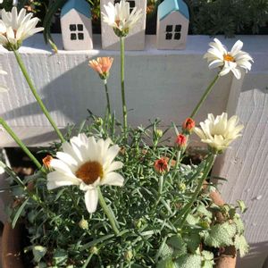 今日もお疲れ様♪(๑ᴖ◡ᴖ๑)♪ オステオスペルマム♡ ローダンセマム♡の寄せ植え そろそろペチュニアが欲しくなるんですが まだもう少し我慢 それまでは💕これで💕
