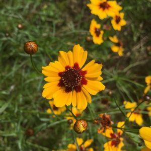 よく見るお花🌼です。 息子に 「かわいいおはなだね。なんて名前?」 って聞かれて答えられず😑 風にゆらゆら、ほそーい茎です。 名前を教えてくださいませ…二種、色違いでしょうか?