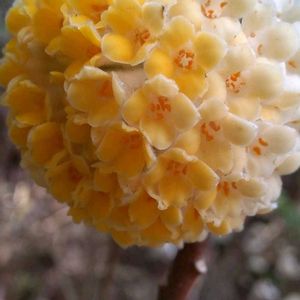 ミツマタ(タイリンミツマタ) タイリンミツマタの花が咲き始めました(市川万葉植物園) 在来種のミツマタに比べ花が大きく,枝も太く全体に大柄 お庭を管理していらっしゃいます方のお話しによれば,在来のミツマタは、環境のせいか育たなく今にも消え入りそうです、、と😢 隣に植えられている,万葉の頃に歌われたミツマタは,とても小さな木で,蕾も僅かです😔 ガンバレ‼️ 花弁に見える小さな花は,筒状の萼が4つに裂けそり返ったもの コウゾ,ガンピと同様高級和紙の原料として利用 (仮名用の半紙としてミツマタの手漉きを重宝しています)