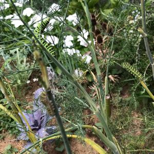 苦手な方の目に留まってしまったらごめんなさい🙇♂️ 今年もイモムシ牧場が始まりました。フェンネルに花が咲き、一旦大きくなり過ぎる時期なので、イモムシに剪定をお願いしたと思って黙認してます😅 イモムシさん、フェンネルのお味はいかがかしら…🍽
