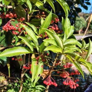 1️⃣ピラカンサ *今日のお花* 3mくらいもある巨木でした 2️⃣トベラ 扉・海桐 3️⃣シロダモ 4️⃣? 散歩道にて 赤い実❤️を集めてみました