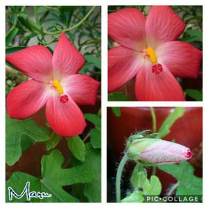 今日のお花のハイビスカス…によく似たお花、通称アジアンハイビスカス🌺 ハイビスカスよりフラットな形。 シベが可愛いです♡