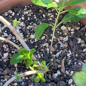 紫陽花の鉢からクリスマスローズが… と思ったら、紫陽花の新芽でした🌱😆