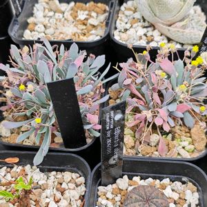定時退社のつもりが…… 冬型塊根のオトンナたち ①クラビフォリア ちょっとゴチャついた写真ですが、新葉も出始め 花も咲きました。 ②ユーフォルビオイデス 二株のうちの一株。こちらも①と同様です。 ③④我が家で播種したカカリオイデス 花芽は上がってきません。