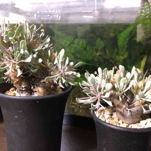 雑草掃除してたら、一緒に引っこ抜いちゃいました。 幼体はパキポっぽいけど葉はユーフォっぽいなぁ。 オトンナ・ユーフォルビオイデスの麓にあったのでその子の赤ちゃんだろうなぁ。