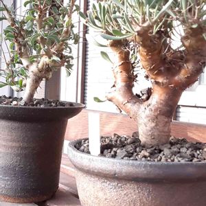 ウチでは割と調子の良い オトンナ ユーフォルビオイデス。 数年前に購入した左のベアルート株 同じく入手のクラビフォリアさんはダメになってしまって、同じ管理してたのでこの子も調子崩して一昨年は小さな葉が所々出るだけでイマイチやったけど去年からは調子戻してこの様にワサワサに😊 なので成長はあんまりしてなくて、実生4年目の右の子が結構追い上げてます😆