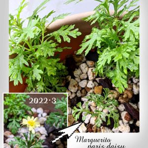 ―✣マーガレット✣― 失敗⑵ 室内で 育てた挿し芽のマーガレット ベランダに出したら1輪の花が‼️ 喜んで しばらく楽しんでました 花の無い茎は ぐんぐん伸びて 開花した茎は 全く伸びません 早く花を 摘むべきでした....失敗