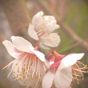 昨日、剪定した南高梅の枝を水の中へ 入れておきました。今朝、いくつか咲いて います。気がついたら100picです💦 皆さんのようなペースではありませんが、 これからも、楽しみたいと思います。 どうぞ宜しくお願いいたします🤗🌸