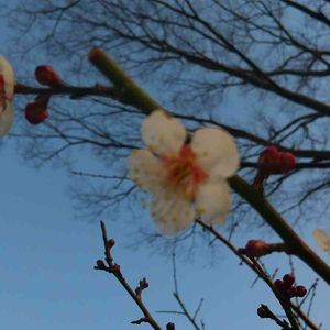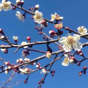 みなべ梅林は今年も閉園しています 我が家の南高梅の開花は五分咲きでしょうか 気温が低いので満開までもう少し先になりそうです