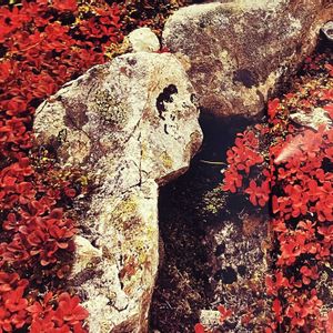 ~ リベンジ登山🚶🏾秋の北アルプス「唐松岳⛰️」⑦ 〜 8月にチングルマがたくさん咲いていた場所にかろうじて綿毛の姿のチングルマが残っていました🥳 葉っぱは真っ赤に紅葉🍁しています 丸山ケルン(ケルンとはドイツ語で標識という意味です)まで来ると青空もかなり見えてきてとても気持ちいい登山です✨