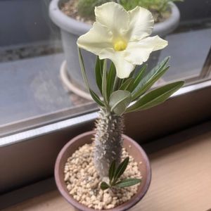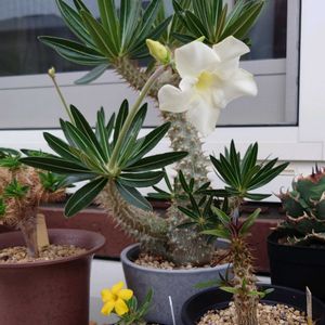 パキポディウム・イノピナツム 白い花、ようやく見れました。🌼 結構大きめです。