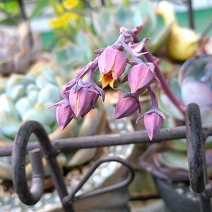 ホロンベンセさん咲きました😊壺型の花が面白い🤣イノピさんにも花芽😊イノピさんは成長著しくて皮が割れて下地が見えてます♪