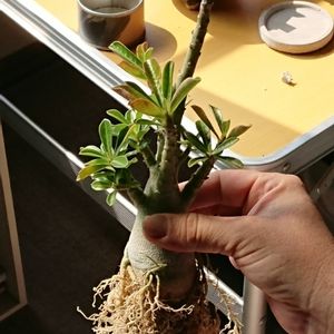 うちのが、「他のサボテンと鉢を変えるかぁ〜。」とアデニゥムを抜いてみると、根が張り過ぎていました。 抜いてみて良かった‼️ 少し大きめの鉢に植え替え☆ 胴体も太くなって、根もぐるぐるでした。