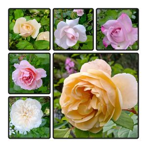 我が家のバラも咲き揃ってきました🌹 ↘ジュード.ジ.オブ.スキュアから時計回りに マクミランナース、?、エーデルワイス、 ニュードーン、 ブルーオベーション