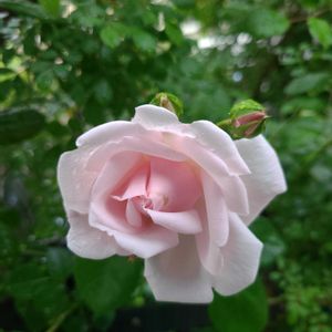 おはようございます☀️🌱 咲くのが遅かったニュードーン 凄く可愛くて好きです🩷 他の薔薇は、ポツンポツンと咲いてくれています🌹 ミントティーは2本の挿し木のうちの1本を姉に上げて、我が家のが枯れてしまい、里帰りです💚😅アリガタイ