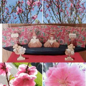 組み木のお雛様🎎 昨年咲いたハナモモ🌺コラージュしてみました。🎶🌿🎎 森のおひな祭り🎎 参加させて下さい~😊