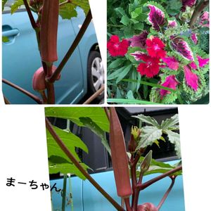 沖縄オクラと普通のオクラ 緑のオクラは、全然花が咲く様子もなく