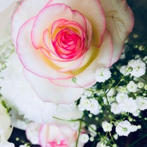 ブルガリホテルで家族にお祝いして頂いたお誕生日席で、娘から心温まるメッセージカードと共にサプライズで贈られたのは、薔薇・「ドルチェ・ヴィータ」でした🥰💗 夢みるように甘く優しい気品ある佇まいに、とても癒されました🌹✨🎂 白地の花弁に、濃いピンク色の縁取りが印象的なドルチェ・ヴィータ💗 躍動的で現代的なお洒落な雰囲気を併せ持ちつつも、強過ぎない上品な香りはプロポーズや記念日のギフトにも人気の切り花の一つですね💐✨ 花名の通り、イタリア語で「甘い生活」を意味します🇮🇹✨ 「ママ、いつもありがとう❣️チャーミングで、頼り甲斐あるママのイメージにピッタリだったから選んだよ~❣️」…だなんて、健気で優しい言葉を添えて手渡してくれました~😭🙏💗💞 最愛の娘の存在は、何物にも代え難い私の人生における神様からの最高の贈り物です✨ _花言葉は、「深い尊敬」、「絆」…他。