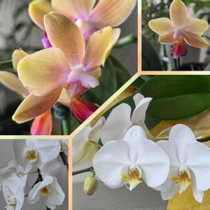 おはようございます🙋♀️ 🏷️コチョウラン 胡蝶蘭 お誕生日に頂いたお花も 花の数が少なくなりコラージュしました😂