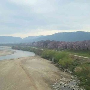 背割堤⑤ 御幸橋から全景 全景は無理ですね、うつってない 全長1・4キロ 250本のソメイヨシノ さて、早朝サイクリングから帰宅。朝ごはん☕😃 実家は携帯ナイ、スマホナイ、パソコンナイ、車もナイ、のないない尽くしなので 頼りは電話だけですね~💦 オレオレ詐欺には 気をつけてと 注意して、、帰るとしますか🚄🚄🚄📦