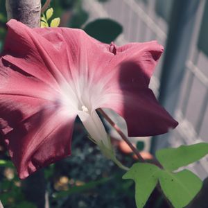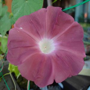 あら、今日のお花「朝顔」ですか😯? ではたった今撮りたてのホヤホヤ✨ 毎朝急いで咲いてるか見に行く朝顔εε((ノ・ω・)ノ 団十郎様パッと綺麗に咲いてました(*//艸//)♥️🤎 2度目だけど今日はアップで❀.*・゚ バックに色々写ってますが 一緒の鉢に植えてるんじゃありません😂 下から百日紅に絡まって伸びてきてるのです🌿