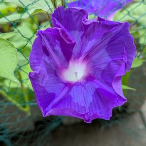 4月25日に種蒔きした朝顔 2輪咲きました💜 ちなみにこれは団十郎です 去年も最初に咲いたのは紫 次にピンク 団十郎色が咲いた時はほっとしました🦐🤎