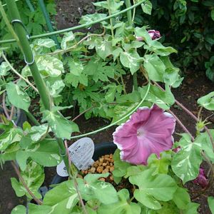 小雨がパラパラしてる中、植え付けました。 夏のカーテンになってくれる事を期待して 植えました♪
