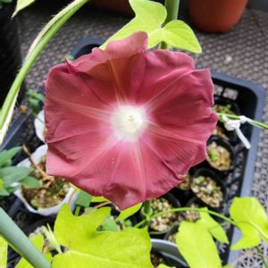 朝顔 団十郎 昨年の苗から取れたタネを蒔きましたら良く発芽してたくさんの苗が出来上がりました🌱 団十郎はライム色の葉っぱが涼しげな品種です 花の色は渋いエンジ色が咲きます 夕顔も植えたので朝から昼間は団十郎を楽しみ、夕方から夜にかけて夕顔を楽しむぞ作戦です