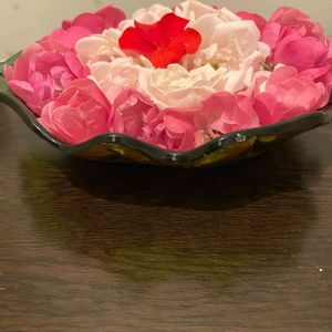おはようございます🌹 薔薇を葉っぱ形の器に浮かべて見ました🌿