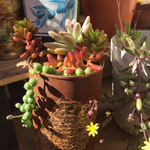先月、地元のフリマでgetした ゆかちんさんのセメント鉢❣ やっと植え替えできました❣ カワ(・∀・)イイ!!